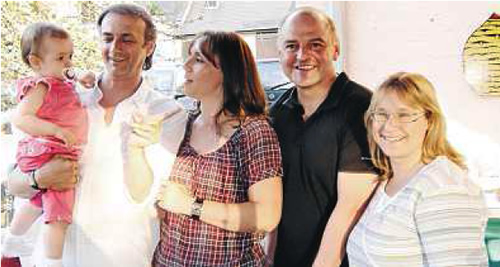 Foto: Franz Erber Papa Theo, dem der Grieche in Bruckdorf gehört, hatte eine riesige Tafel aufgebaut und gut 30 Freunde eingeladen. Klein Magdalena bekam auch eine riesengroße Schokotorte, von der sie ganz begeistert war. Alex und Armin Wolf nehmen ihre Patenschaft übrigens richtig ernst und haben die kleine Maus sehr in ihr Herz geschlossen. Mindestens ein- bis zweimal pro Woche schauen sie vorbei. Als Geschenk brachten die Wolfs Magdalena ein tolles „Lillifee“-Essgeschirr mit und zwei Paar „beste“ Laufschuhe. „Im Moment ist sie noch ein bisserl wacklig auf den Beinen“, erzählt der Patenonkel stolz, „aber ich hoffe ja doch, dass aus ihr eine Sportlerin wird und da muss man bereits jetzt mit gutem Schuhwerk vorbauen.