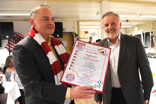 Armin Wolf ist Ehrenmitglied Nummer 7 und bekam die Mitgliedsnummer 2.800. Ehrenmitglieder im Nabburger FC Bayern München Fanclub sind unter anderem Karl-Heinz Rummenigge und Uli Hoeneß.
