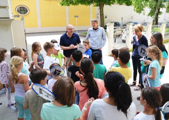 Bei der Vorbereitung der Klassen 1a und 2c an der Kreuzschule Regensburg für den Seelauf in Neutraubling stellte sich heraus, dass die Mittagsbetreuung der Schule fast keine Sportgeräte zur Verfügung hat. Mit Hilfe des Armin Wolf Laufteams hat sich das jetzt geändert. Herr Tahedl von Intersport Tahedl hat sich bereit erklärt der kompletten Mittagsbetreuung Fußbälle, einen Volleyball sowie Tischtennis- und Badminton-Ausrüstung in großer Zahl zu schenken. Vielen Dank!