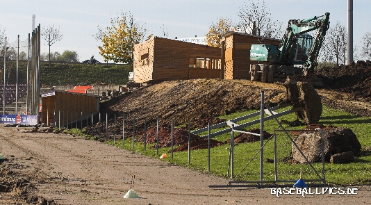 Foto: baseballpics.de Die Schwabelweiser Baseballer haben unverzüglich die ersten Maßnahmen eingeleitet. Bereits diese Woche fing das Bauunternehmen Max Engl mit den Erdarbeiten an. Noch vor Weihnachten ist die Fertigstellung des Rohbaus für das neue Betriebsgebäude und den Umkleidetrakt geplant. Weitere Maßnahmen des 1998 für rund zwei Millionen D-Mark errichteten Baseball-Stadions werden die Sanierung des Rasenspielfeldes, das Anbringen eines Prallschutzes an den Spielfeldbegrenzungen, die Ertüchtigung der Flutlichtanlage sowie die Errichtung einer neuen Anzeigentafel nach internationalen Bestimmungen sein. Die Gesamtkosten für den Stadionumbau beziffert Armin Zimmermann auf 1,4 Millionen Euro. Die Stadt Regensburg erteilte hierfür einen Zuschuss von 657 000 Euro. Der Freistaat Bayern stellt Zuwendungen aus Staatsmitteln für den Sportstättenbau in Höhe von 296 350 Euro in Aussicht. Den Restbetrag muss der Verein selbst aufbringen.