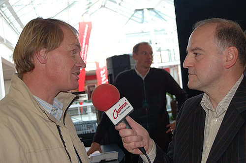 Das deutsche Ski-Ass gab zuerst im Sportgeschäft "Sport 2000" Autogramme und war dann im Einkaufszentrum Teilnehmer einer Podiumsdiskussion in Sachen Skisport.