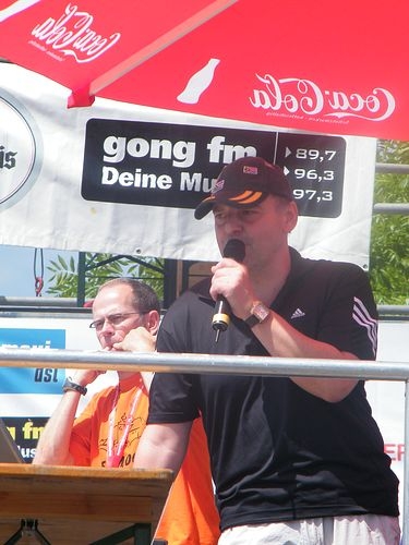 Auch für Moderator Armin Wolf war es ein harter Tag. In einer siebenstündigen Dauermoderation holte er gemeinsam mit Arthur Schmidt die Läufer und Inline-Skater ins Ziel.