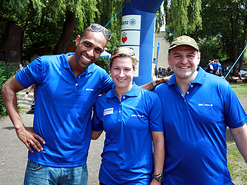 Der KKH-Allianz-Lauf befindet sich momentan auf Deutschland-Tournee, Regensburg ist eine Station von einem guten Dutzend Städten. Ein buntes Rahmenprogramm garantierte den Anwesenden einen schönen, abwechslungsreichen Nachmittag. So gab es diverse Showeinlagen, etwa die Breakdance-Gruppe "Coffee Breakz" aus Neuötting, die Regensburger Phönix-Cheerleader oder die Musik-Tanzgruppe Sarara, die schon beim Bambini- Lauf durch motivierend-anspornende Trommelrhythmen erste Akzente setzte. Aber auch eine Kletterwand vom Deutschen Alpen Verein, Torwand-Schießen, eine Kinder-Hüpfburg sowie diverse Informationsstände waren aufgebaut worden. Umfassendes Entertainment sozusagen.