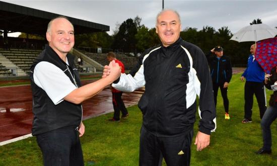 Für einen guten Zweck: Bischof Rudolf Voderholzer und Armin Wolf machen Sportabzeichen in Schwandorf
