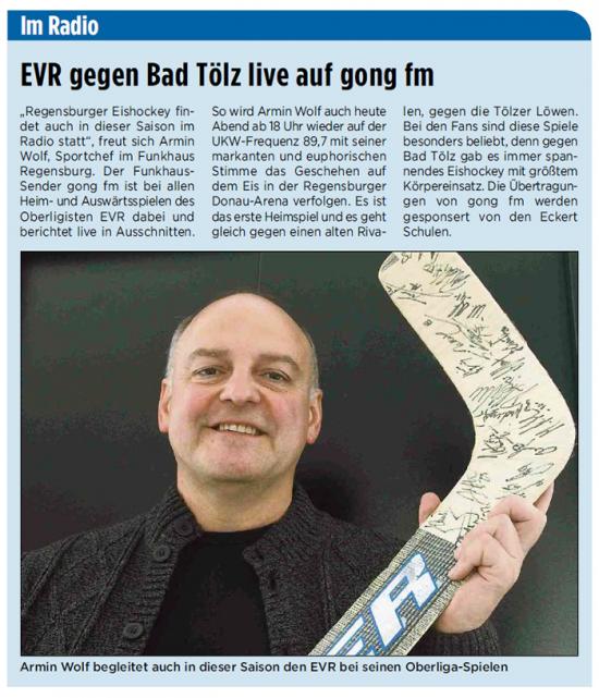 Beim Spiel des EV Regensburg beim EV Füssen wurden die Regensburger Reporter-Crew mit Armin Wolf und Markus Riederer von den Füssener Journalisten wie immer herzlichst empfangen. In der (etwas engen) Übertragungskabine gibt es keinerlei Berührungsängste.
