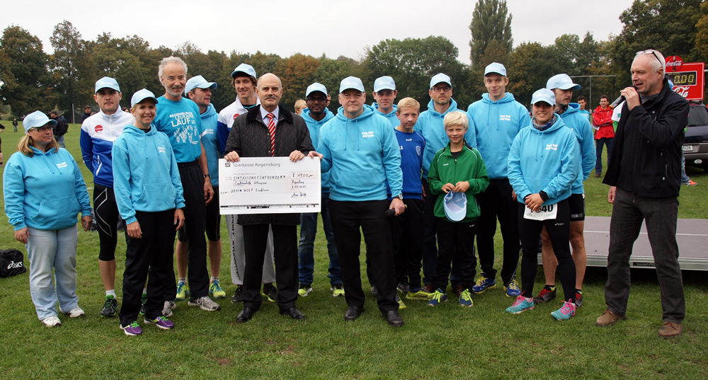 Beim Leukämielauf in Regensburg (6.10.2013) konnte unsere Mannschaft einen Scheck von 1.500 Euro übergeben. Das ist die höchste Summe, die das Armin Wolf Laufteam jemals gespendet hat. Unser Dank gilt dabei unserem neuen Sponsor IKK classic. Der sportliche Erfolg war herausragend. Beim Nachwuchslauf wurde der Sohn Leo von Teammitglied Christian Schild Dritter. Über die gut 5 Kilometer belegten Veda Erös und Oliver Köhler jeweils Platz 2. Über die Langdistanz (10 km) gab es einen Dreifach-Erfolg bei den Herren. Platz 1: Christian Schild, Platz 2: Felix Potschatka, Platz 3: Vinodkumar Shrinivas.