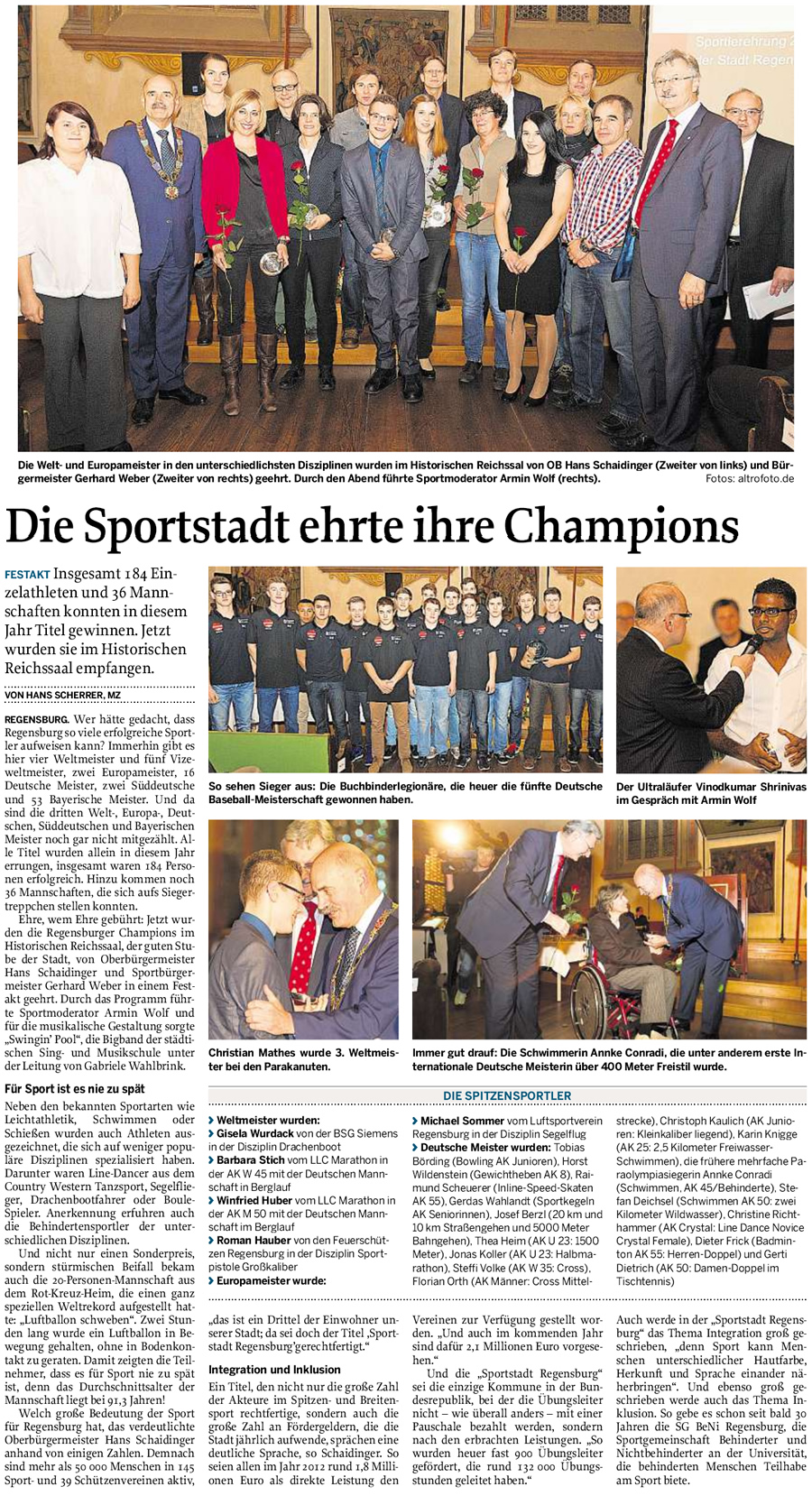 Schwerstarbeit bei Sportlerehrung der Stadt Regensburg