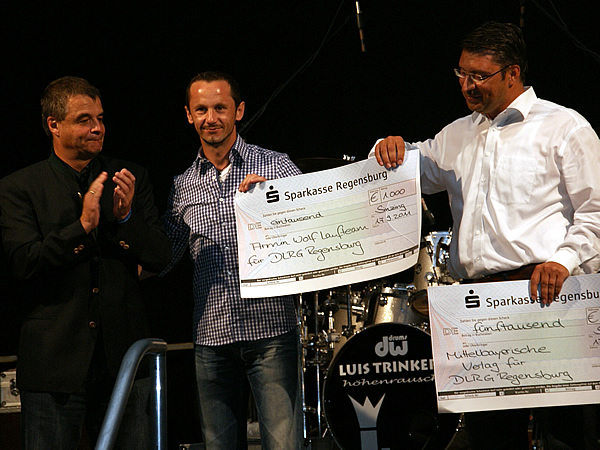 Am Abend konnte Bernd Stuber bei der Siegerehrung zusätzlich zum Scheck der Mittelbayerischen Zeitung 1.000 EUR an Werner Kammermeier von der DLRG Regensburg übergeben.