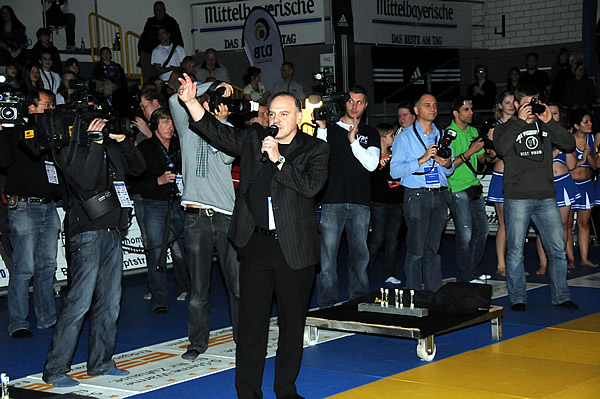 Foto: Mittelbayerische Zeitung 22.11.2010 Meisterwürdig! In der Josef Stanglmeier-Halle war das alles. Auf dem Weg zum 16. Titel bot der deutsche Rekordmeister TSV Abensberg Judo vom Feinsten gegen eine Konkurrenz, die sich hoch motiviert alle Mühe gab. Von Moderator Armin Wolf und den TSV-Cheerleaders angeheizt sorgten die 1200 Fans für tolle Stimmung. Dass im Endkampf ein 10:3 (80:27)-Erfolg gegen JC Leipzig zu Buche stand, war das Produkt einer Abensberger Klasseleistung. „Jetzt bin ich glücklich“, strahlte Ehrenabteilungsleiter Otto Kneitinger.