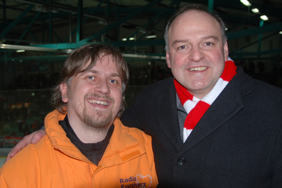 Die Saison des EVR in der Oberliga Süd neigt sich dem Ende entgegen. Ein Übertragungs-Marathon liegt hinter mir. Bei 41 von bisher 44 Spielen war ich live on Air bei gong fm. Während der Saison habe ich viele nette Kollegen kennengelernt. Besonders bedanken möchte ich mich bei Werner Streidl und Thomas Ploss, die mir mit Rat und Tat und technischer Unterstützung zur Seite standen.
