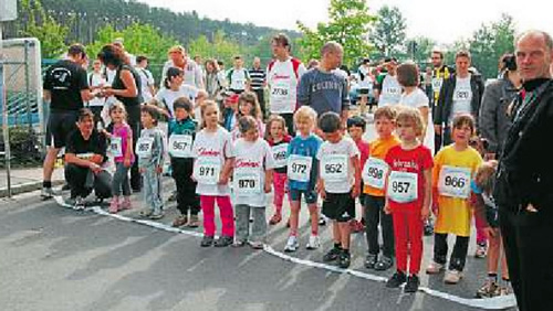 Foto: Peter Nicklas Von 9 Uhr an wurden die Teilnehmer auf die Strecke geschickt. Zunächst war der Nachwuchs an der Reihe einschließlich der „Bambini“, zum Teil von den Eltern begleitet. Stolz konnten sie anschließend Medaillen als Erinnerung in Empfang nehmen. Kurz vor 10 Uhr erfolgte der „Massenstart“ für die Läufer, die zwischen Strecken von 6,5 Kilometer, 12,5 Kilometer und 18 Kilometer wählen konnten. Gesamtsieger wurde Alfred Bialek vom TB 03 Roding.