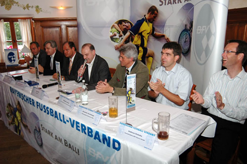 Foto: Walter Brugger, BFVUnterstützung erhielt er dabei von Peter Lanzinger, dem Sportlichen Leiter der Bad Kötztinger: "Die Bayernliga ist nicht schwächer als letzte Saison, auch nach Einführung der 3. Liga ist es die höchste Amateurliga im Freistaat. Traditionsvereine wie die SpVgg Bayern Hof, Schweinfurt 05 oder die SpVgg Bayreuth sorgen für ausreichende Attraktivität."