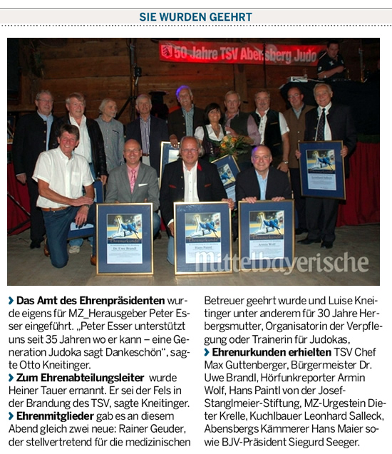Große Auszeichnung beim Galaabend 50 Jahre Judo TSV Abensberg