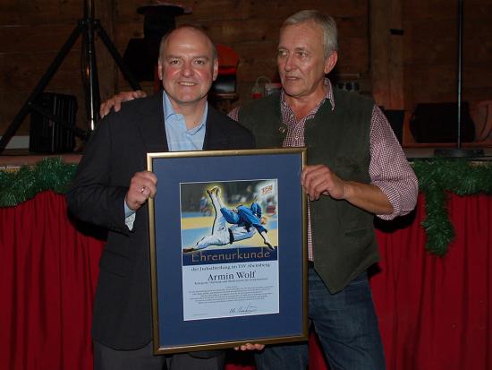Im Rahmen einer großen Gala im Abensberger Weißbierstadl wurden Persönlichkeiten aus unterschiedlichsten Bereichen für Ihre Unterstützung des Abensberger Judosports ausgezeichnet. Armin Wolf erhielt dabei den Preis für Hörfunkbeiträge und Moderation "für Generationen". Die Ehrungen nahm "Mr. Judo Abensberg" Otto Kneitinger vor.