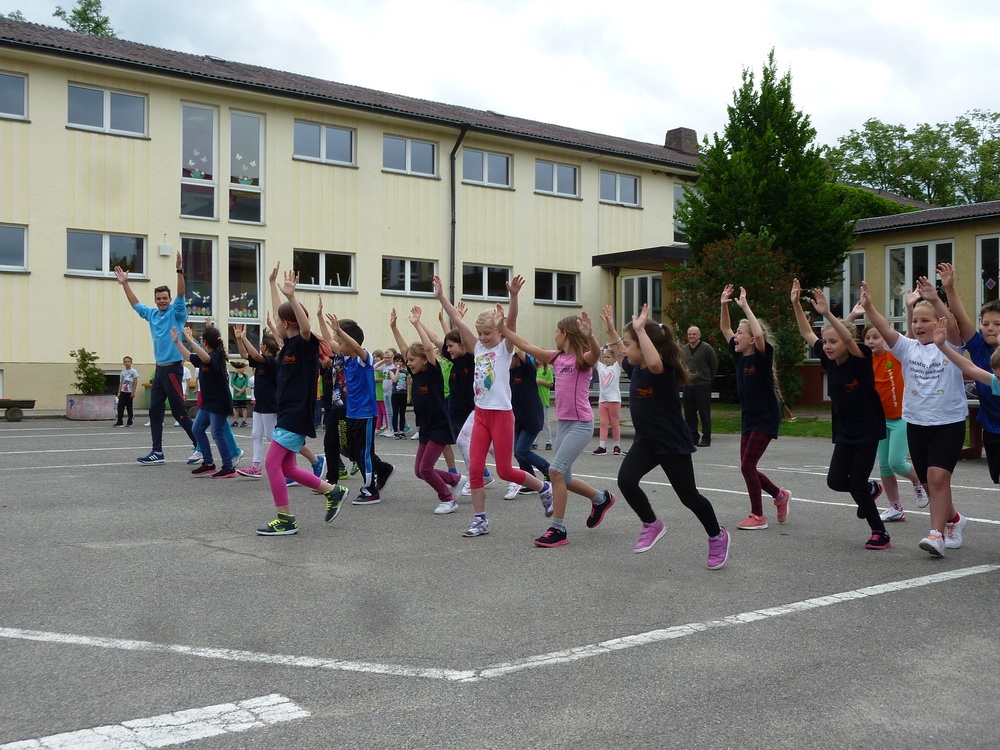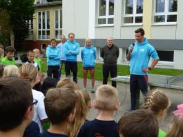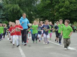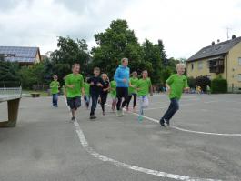 Laufteam trainiert Kinder der Schwandorfer Lindenschule