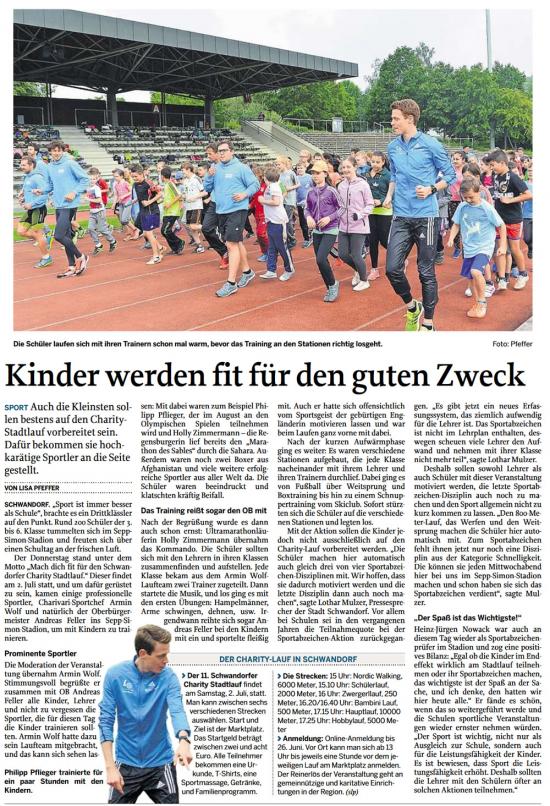 Auf Bitten des Schwandorfer Schulamtes hat das Armin Wolf Laufteam im Sepp-Simon-Stadion einen Sporttag durchgeführt. Die Kinder wurden professionell aufgewärmt und durften dann an verschiedenen Stationen ihr Können beweisen. 12 Trainer des Teams sorgten für einen reibungslosen Ablauf. Stargast war Olympiateilnehmer Philipp Pflieger. Gleichzeitig konnten die Kinder bei vielen ehrenamtlichen Prüfern das Sportabzeichen ablegen.