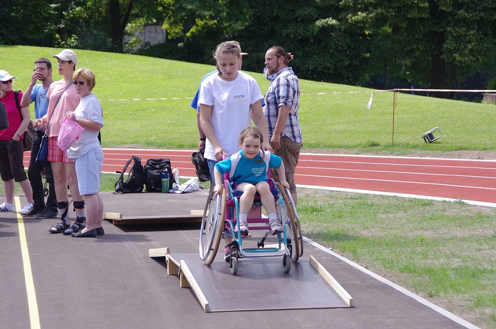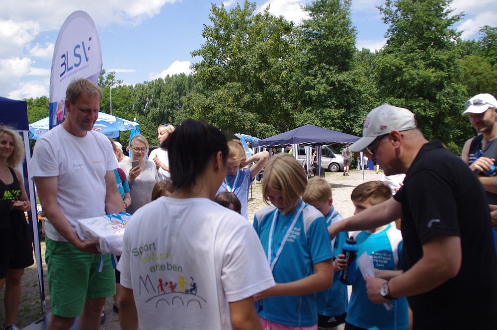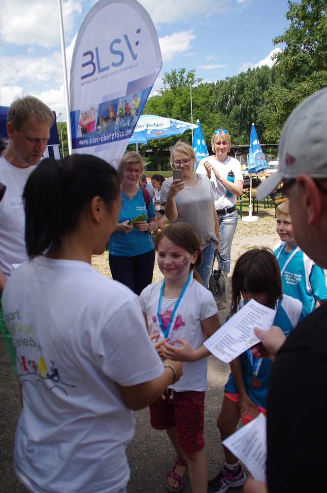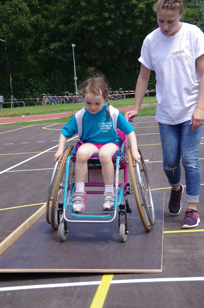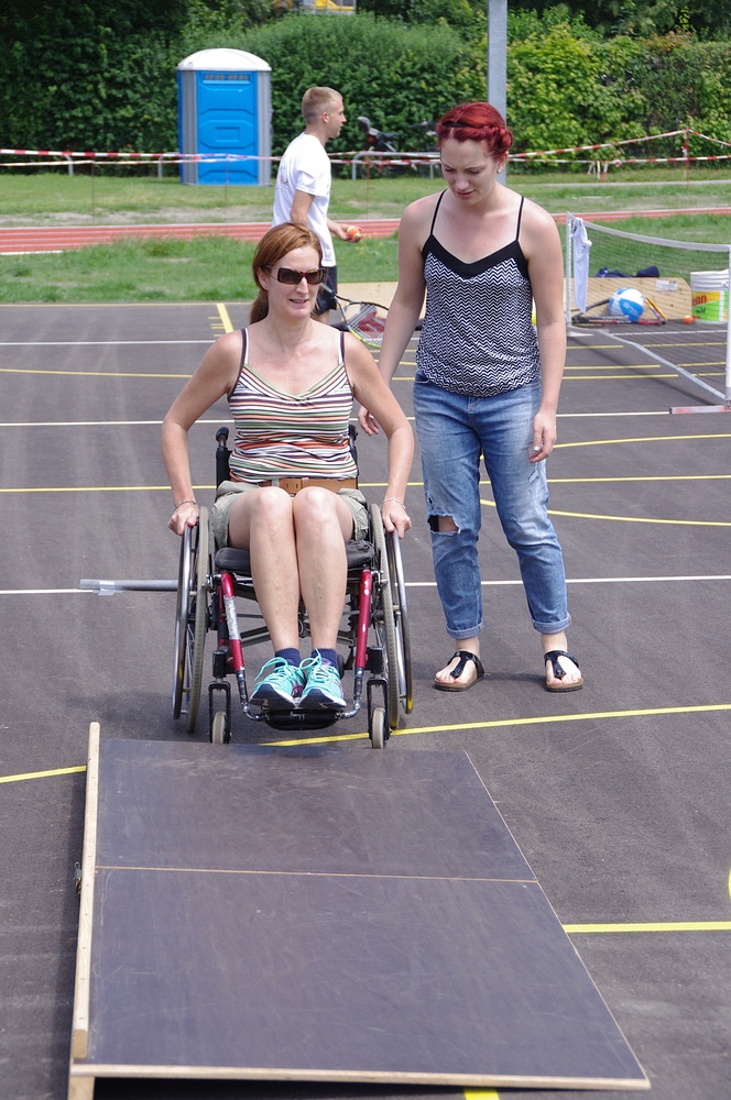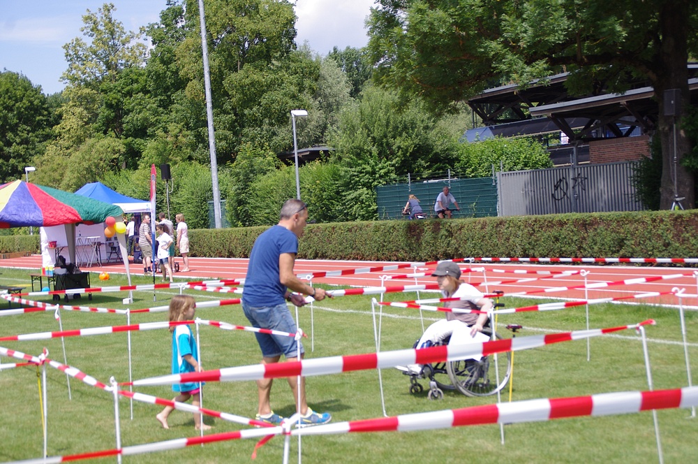 Gemeinsam mit seinem behinderten Kollegen Holger Kiesel vom BR gestalte Armin Wolf den großen Sporttag am Regensburger RT- Gelände (9.7.2016). Behinderte und Nichtbehinderte konnten an vielen Stationen Sport treiben. Wer sieben Stationen absolviert hatte bekam eine Medaille. Auch das Armin Wolf Laufteam war mit dabei. Erwachsene und Kinder des Teams hatten viel Freude an der gelungenen Veranstaltung.