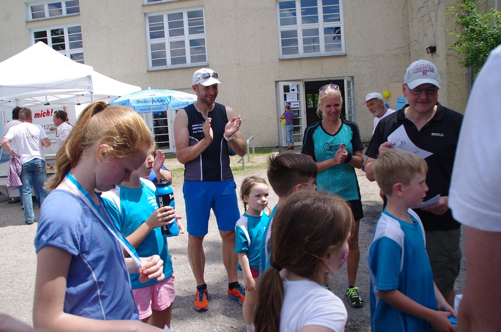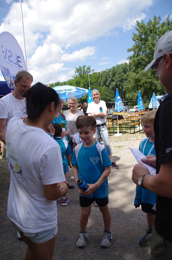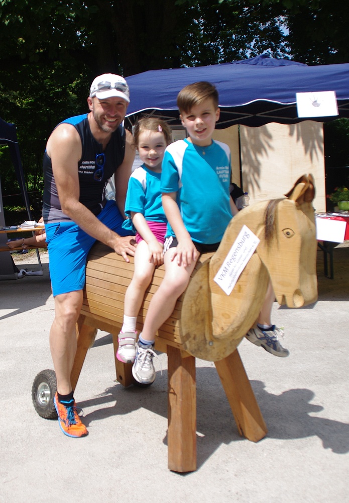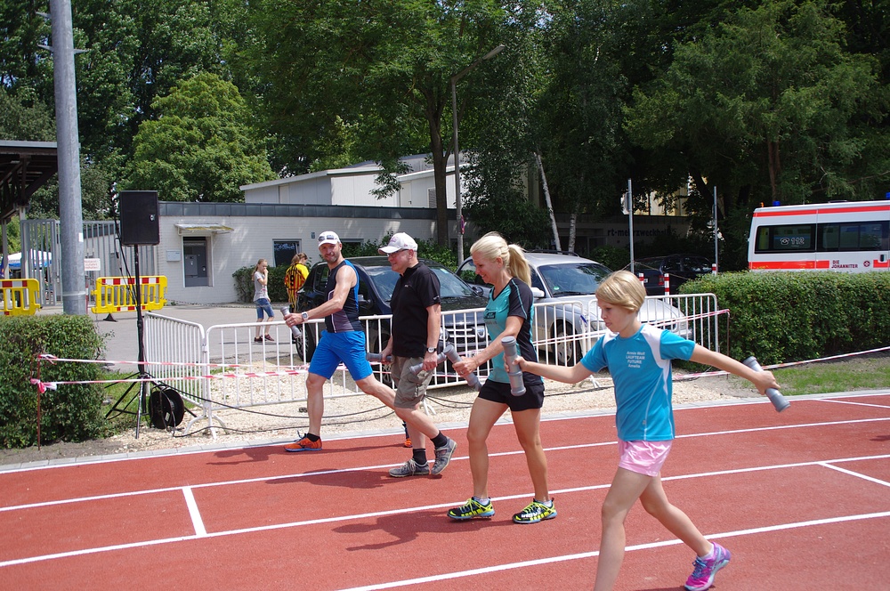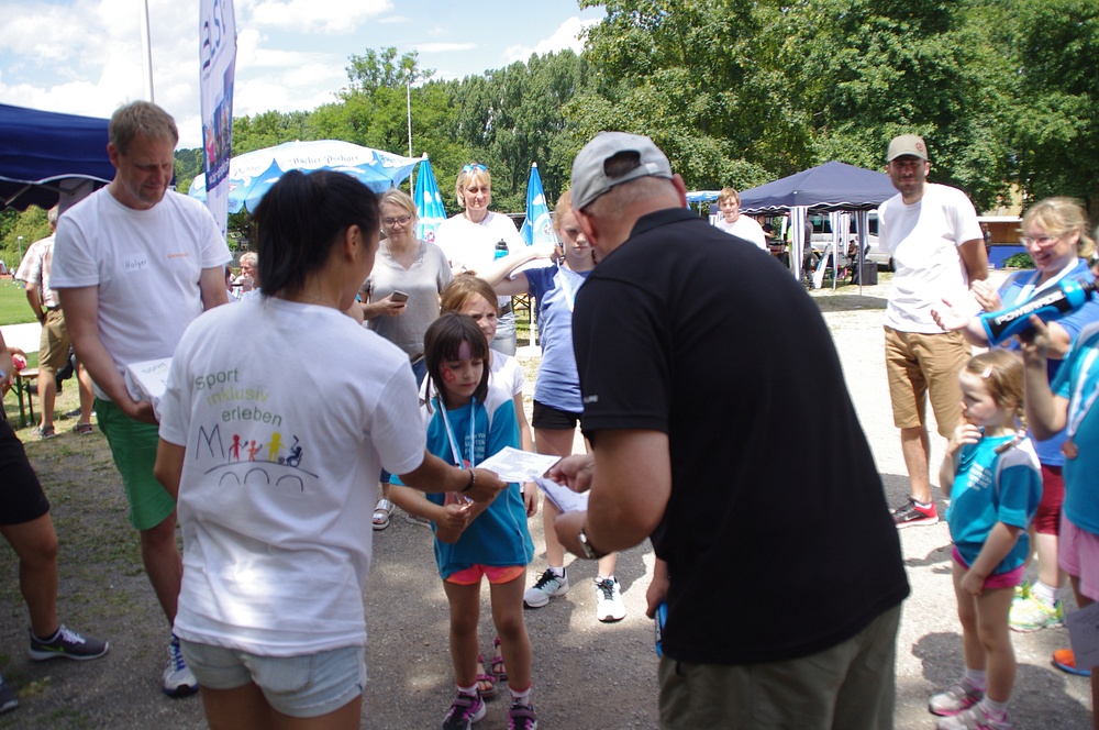 Gemeinsam mit seinem behinderten Kollegen Holger Kiesel vom BR gestalte Armin Wolf den großen Sporttag am Regensburger RT- Gelände (9.7.2016). Behinderte und Nichtbehinderte konnten an vielen Stationen Sport treiben. Wer sieben Stationen absolviert hatte bekam eine Medaille. Auch das Armin Wolf Laufteam war mit dabei. Erwachsene und Kinder des Teams hatten viel Freude an der gelungenen Veranstaltung.