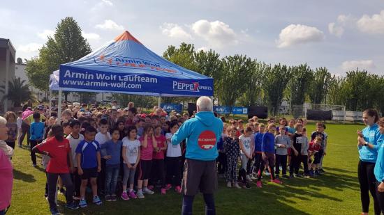 Die Kinder der Grundschule Burgweinting sollten bei dieser Aktion je nach Alter 15 oder 30 Minuten am Stück laufen. Alle haben es geschafft. Unterstützt wurden die Kinder vom Armin-Wolf-Laufteam, von den Eisbären Regensburg und von den Buchbinder Legionären.