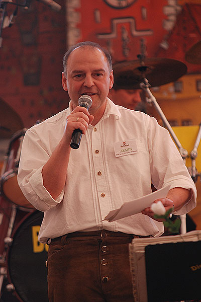 Foto: Thomas Harmsen Auf Punkt 16.49 Uhr genau zirkelte Armin Wolf gemeinsam mit den zur musikalischen Unterstützung aufmarschierten "Bachler Buam" die Krönung der neuen Oberpfälzer Bierhoheiten. Die Uhrzeit geht auf das Gründungsjahr der Brauerei Bischofshof im Jahre 1649 zurück. 33 junge Oberpfälzerinnen im Alter zwischen 18 und 25 hatten sich ursprünglich um die begehrten Repräsentationsämter "im Dienste" der bischöflichen Brauerei beworben. Zehn waren in die Endrunde gekommen. Und wie sie da am Samstag herausgeputzt und in ausgewählten Dirndl aus dem Hause Wirkes auf der Bühne standen, konnte sich jeder vorstellen, wie schwer es der Jury gefallen war, eine Entscheidung zu fällen. Um der Enttäuschung vorzubeugen, hatte sich der Brauereidirektor kurzerhand entschlossen, allen Damen das Dirndl als Erinnerung fürs Mitmachen zu schenken.