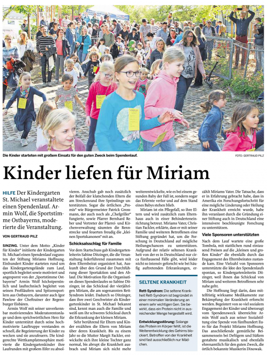 Bei der Aktion des Kindergartens St. Michael in Sinzig kamen zugunsten der Stiftung "Miriams Hoffnung" 6.000 Euro zusammen. Das Armin-Wolf-Laufteam und die Eisbären Regensburg halfen kräftig mit.
