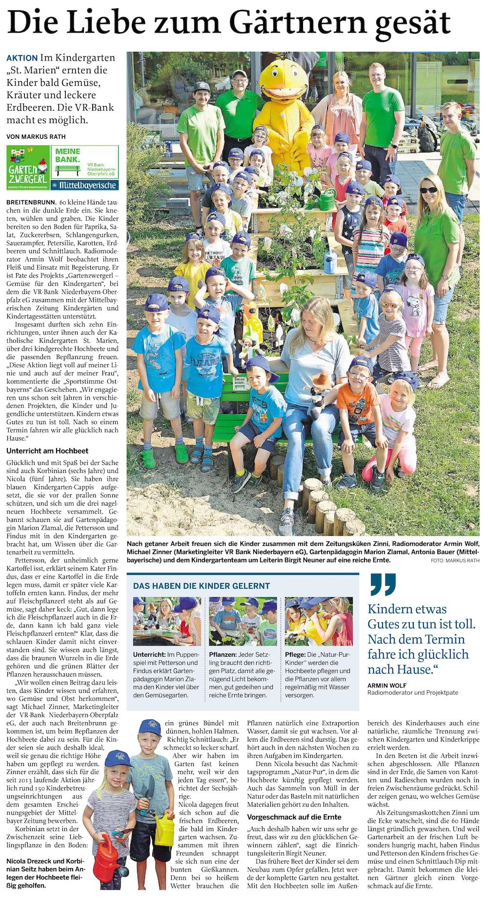 Gemeinsam mit Michael Zinner besuchte Armin Wolf den Kindergarten in Breitenbrunn. Dort wurden gemeinsam mit den Kindergartenkindern Hochbeete gepflanzt.