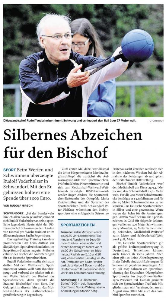 Armin Wolf mit Bischof Voderholzer beim Sportabzeichen