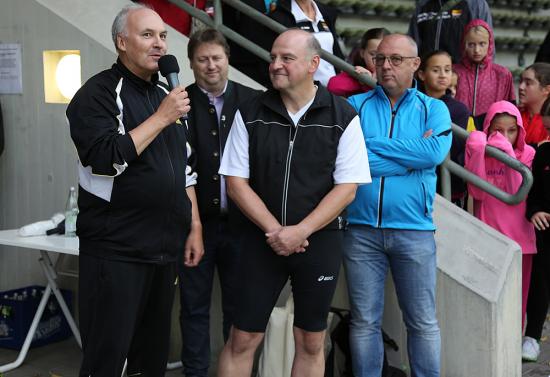 Für einen guten Zweck: Bischof Rudolf Voderholzer und Armin Wolf machen Sportabzeichen in Schwandorf