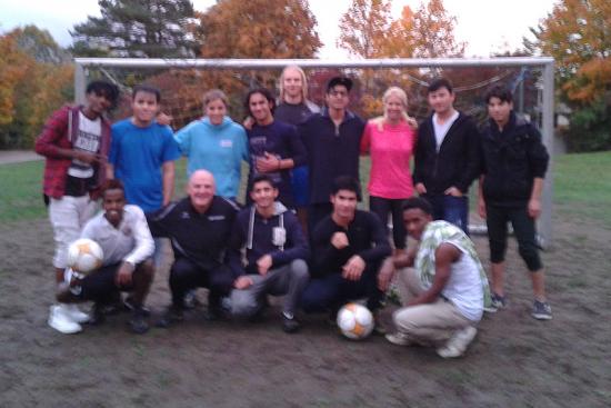 Die Gruppe "Sindbad" in Kallmünz besteht auch 11 unbegleiteten jungen Flüchtlingen und vier Betreuerinnen. Das Armin Wolf Laufteam besuchte die Jungs zu einem Motivationsabend: Lauftraining, Gymnastik und Fußballspielen stand auf dem Programm. Holly Zimmermann, Veda Erös, Felix Potschatka, Alexandra Wolf und Armin Wolf waren danach noch zum Essen eingeladen.