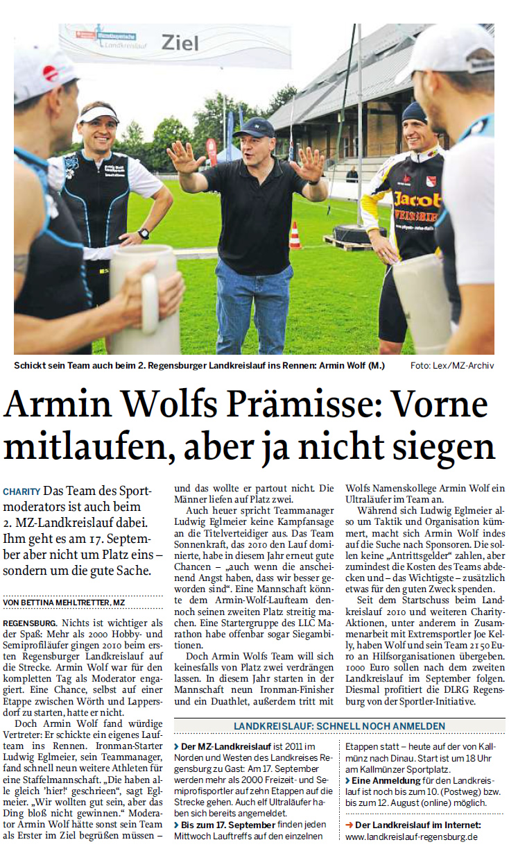 Das Armin Wolf Laufteam hat beim hochkarätig besetzten zweiten Mittelbayerische Landkreislauf am 10. September 2011 einen hervorragenden 5. Platz belegt.