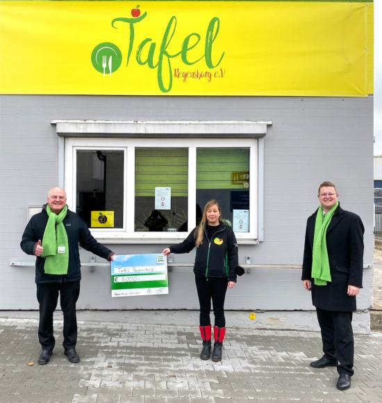 Die VR Bank Niederbayern-Oberpfalz unterstützt die Tafel in Regensburg mit einer Spende in Höhe von 5.000 Euro. Die Tafel in Regensburg sorgt dafür, dass weniger Lebensmittel weggeworfen werden. Diese Lebensmittel kommen bedürftigen Menschen in Regensburg zu Gute. Die Lebensmittel vor dem Müll zu bewahren und an die Menschen in der Region zu verteilen erfordert viel Logistik und einen großen persönlichen Einsatz der Helfer. Damit das Licht in der Halle brennen und die LKW weiter fahren können, hilft MEINE BANK mit einer Spende in Höhe von 5.000 Euro dazu.